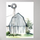 Aquarellmauer I von Jennifer Paxton Parker. Die weiße Scheune mit Grünpflanzen und einer kleinen Mühle in Grauweiß.