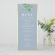 Menu simple, élégant, botanique bleu bleu mariage, avec aquarelle de la végétation eucalyptus et script de calligraphie moderne.