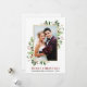 Elegante Watercolor Winter Greenery Frohe Weihnachten Hochzeit Foto Neu verheiratete Holiday Card beinhaltet Eukalyptus-Blätter und rote Heilige Beeren. Goldrahmen.