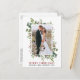 Elegante Watercolor Wintergrün Frohe Weihnachten Hochzeit Foto Neu verheiratete Ferien Postkarte beinhaltet Eukalyptus-Blätter und rote Heilige Beeren.