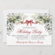 Watercolor Greenery Red Bow Holiday Party Einladung