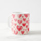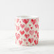 A white coffee mug featuring an all-over watercolor heart pattern with soft, hand-painted textures and a romantic artistic feel. The repeating heart design wraps smoothly around the mug, creating a charming and cohesive look that adds a gentle, warm touch to everyday drinkware.