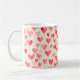 A white coffee mug featuring an all-over watercolor heart pattern with soft, hand-painted textures and a romantic artistic feel. The repeating heart design wraps smoothly around the mug, creating a charming and cohesive look that adds a gentle, warm touch to everyday drinkware.