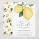 Une élégante invitation à la douche nuptiale virtuelle avec des citrons d'aquarelle et des feuilles verts sur un arrière - plan blanc. "virtual" est en vert de style calligraphie moderne police. Personnalisez avec les détails de l'événement en caractères gris foncé et vert. Le verso est composé d'un motif de citrons d'aquarelle et de feuilles.