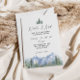 Watercolor Mountains Le Faire-part de mariage Woodland présente un paysage de montagne aquarelle d'arbres boisés. Parfait pour votre mariage rustique ou extérieur