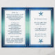 Ces programmes bi-plis sont parfaits pour tout couple qui planifie un mariage romantique en bord de mer. La décoration est composée d'un arrière - plan d'aquarelle dans les tons bleu et vert avec un cadre décoratif blanc bordé et est agrémentée d'un délicieux motif d'étoiles de mer. Le design simple peut être personnalisé pour convenir à votre événement spécial et sera la commande parfaite pour toute fête sur la plage, y compris : douches nuptiales, fiançailles, wedding showers, fêtes d'anniversaire et bien plus encore.