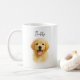 This charming watercolor pet portrait coffee mug features your favorite pup on a clean white background with their name in modern black script. Upload a photo or watercolor portrait image of your pet dog or cat to create a one-of-a-kind keepsake or memorial gift for dog lovers. All text is fully customizable. If you need design assistance, please reach out to us for help before placing your order with Zazzle.