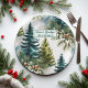 Watercolor Pine Muster Elegante Winter Pappteller