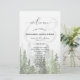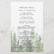 Belle Pine Woods Forest Wedding programme feuille de papier design avec une aquarelle pinède/forêt et un grand "bienvenue" dans un script élégant ainsi que votre monogramme et les détails du programme de mariage pour vous de personnaliser.