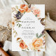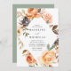Elegante Herbstblumen-Einladungen, die Ihre Hochzeitsdetails zeigen, gerahmt von Aquarellfarben-Blume, Sukkulenten und Blätter in den Farbtönen Rosa, Pfirsich, Orange, Weiß, Braun & Grün. Die Blumenhochzeit im Herbst lädt zum Umkehren ein, um einen soliden grünen Hintergrund zu bieten.
