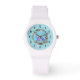 Watercolor Wolf Stehend in einem Boho Style Kranz Armbanduhr