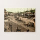 Vintages Puzzle Irlands mit Straßenszene an Waterford-Kais c1900, an den Strollers im Zeitraumkleid, an den Dampfbooten und an den Segelschiffen machte am Dock fest. Pferdewagen u. -Drays. Digital wieder hergestellter antiker Irland-Druck.