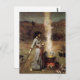 John William Waterhouse la carte postale Magic Circle. Peinture à l'huile sur toile de 1886. Le peintre pré-Raphaélite John Waterhouse s'inspire régulièrement de thèmes littéraires et mythologiques. Le cercle magique continue la fascination de l’artiste pour le surnaturel, représentant une sorcière aux cheveux foncés dessinant un cercle magique dans la saleté avec une baguette. Portant une robe bleue ornée de figures persanes, elle se tient à côté d'un chaudron fumant au-dessus des braises orange et rouge d'un feu qui brille. Des corbeaux noirs se tiennent à proximité en observant le déroulement du rituel. Un grand cadeau pour les fans de J.W. Waterhouse, les Pré-Raphaélites, magie, sorcellerie et peinture romantique anglaise.
