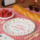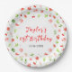 This beautiful and elegant plate features watercolor watermelon, pomegranate, strawberries, cherries and foliage. The text combines handwritten script and serif fonts for a stylish and modern look. This is perfect for a spring or summer rustic birthday party.