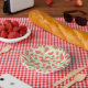 Inspiriertes Design aus der Mitte des Jahrhunderts mit einer Retro-Touch mit stilisierten Wassermelonen auf hellgrünem Hintergrund. Ein individuell anpassbares Design für Sie, um mit Ihrem eigenen Text, Bildern und Ideen zu personalisieren. Ein originales digitales Kunstbild von QuirkyChic.