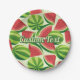 Reife rote Wassermelonen Scheiben. Nahtloses Muster. Benutzerdefinierte Hintergrundfarbe. Eigener Text.