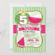 Niedliche pinkfarbene und grüne Wassermelone, Sommerjung, Junge oder Mädchen-Geburtstagsfeier auf hellgrün-weiß gestreiftem Hintergrund. Personalisieren Sie dieses niedliche, laden Sie mit dem Namen Ihres Kindes ein. Eine 5., 5. Geburtstagskandle, die auf das Alter Ihres Kindes personalisiert sein kann. Ideal für Kinder, die das erste, das erste, das erste, das erste, das erste, das erste, das zweite, das Kleinkind, die kleinen Kinder oder die älteren Kinder. Große Einladung für Wassermelone, Obst, Essen Sommer Thema Geburtstag Party.