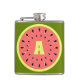 Design mit einer Retro-Touch inspiriert von einer Wassermelone mit einem rosa Kreis und Samenmuster auf einem dunkelgrünen Hintergrund. Ein individuell anpassbares Design für Sie, um mit Ihrem eigenen Text, Bildern und Ideen zu personalisieren. Ein originelles digitales Kunstbild.