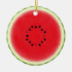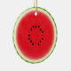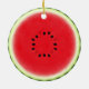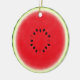 Genießen Sie eine saftige Wassermelone-Scheibe mit Rinde, Samen, Samenlöchern und einem Streifen gestreifter Haut am Rand.
