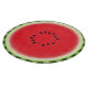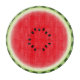 Genießen Sie eine saftige Wassermelone-Scheibe mit Rinde, Samen, Samenlöchern und einem Streifen gestreifter Haut am Rand.