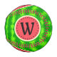 Dieses hübsche Wassermelone-Monogramm Baseball-Design hat eine runde Frucht, die aussieht, als wäre sie geschnitten worden. Das saftig rosa-rote Fleisch der Melone zeigt sich durch, zusammen mit einem Kreis von schwarzen Wassermelonen Samen. Die Beere hat auch ein gesprenkeltes grünes, gemotztes Falten Muster.