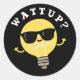 Watt Up Funny Electric Bulb Pun Dark BG Runder Aufkleber