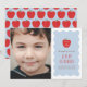 Feiern Sie den Abschluss Ihres Kindes im Kindergarten mit dieser modernen und charmanten Abschlussanzeige. Die Vorderseite der Karte zeigt eine süße, halbtönige Apfelabbildung mit einem überlagerten Text "Jahrgang (Jahr)". Unter der Abbildung steht die Nachricht "der Augapfel unseres Auges" sowie Platz für den Namen Ihres Kindes und ihrer Schule. Der Text und das Design sind auf einem soliden blauen Hintergrund platziert, mit einem spielerischen, weißen wellenförmigen Rahmen. Diese Anzeige bietet auch Platz für ein großes Kundenfoto. Die Rückseite der Karte zeigt ein koordiniertes Halftone-Apfelmuster.
