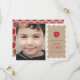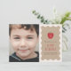 Feiern Sie den Abschluss Ihres Kindes im Kindergarten mit dieser modernen und charmanten Abschlussanzeige. Die Vorderseite der Karte zeigt eine süße, halbtöne Apfelabbildung mit einem darüberliegenden Text "Jahrgang (Jahr)". Unter der Abbildung steht die Botschaft "der Augapfel unseres Auges", sowie Platz für den Namen Ihres Kindes und ihrer Schule. Der Text und das Design sind auf einem Faux-Kraft-Hintergrund platziert, mit einem spielerischen, beige-farbenen wellenförmigen Rahmen. Diese Anzeige bietet auch Platz für ein großes Kundenfoto. Die Rückseite der Karte zeigt ein passendes Halbtöne-Apfelmuster.