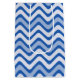 Die Wellen sind in Blau und Weiß gehalten. Sie bestehen aus kurvenförmigen Linien, geometrischen Formen, die völlig abstrakt, aber auch von der natürlichen Welt inspiriert sind. Ein sauberes und stilvolles Design.