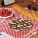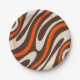 Wavy Loops Retro Abstraktes Muster Braun und Orang Pappteller