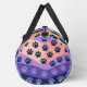 This charming Gear bag features a delightful pattern of dark blue paw prints set against wavy bands of purple, peach, and lavender hues. It's a perfect Kit bag and a practical Weekender for pet lovers on the go.