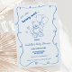 Une invitation au baby shower bleu poussiéreux griffé à la main, à la mode, suivant la dernière tendance en baby shower stationnaire. Cette invitation fantaisiste et décalée présente le thème du baby shower "We can bearly" dans une perspective branchée. Parfait invitation pour les baby showers modernes et tendance pour les petits garçons.