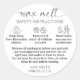 Modernes Wax schmilzt Warning Label mit elegantem Skript-Schriftart und Wachs schmilzt Pflegesymbole. Dieser Wachsartenaufkleber in Schwarz/Weiß enthält die wichtigsten Pflegeinformationen für die Wachs-Erwärmung. Dieses runde Sicherheitsetikett fügt Ihrem Verpackungsdesign für Wachsschmelzen die Touch der Endbearbeitung hinzu. Wichtig! Doppelter Karo aller Inhalte, um sicherzustellen, dass sie den lokalen Bestimmungen entsprechen. Der Platzhaltertext ist nur eine Anleitung.