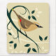 Auf Baumzweigen sitzende Flügel mit dekorativen Blätter, moderne Vogelvektorkunst mit fließenden wirbelnden Linien auf beigem Hintergrund