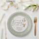 Celebrate the upcoming arrival of a little one with these adorable gender-neutral baby shower plates. Featuring a cuddly teddy bear floating with pastel balloons and the playful phrase “We can bearly wait,” this design blends cuteness with simplicity for a timeless look. The soft sage green background make it perfect for both baby boys and girls, while the clean typography keeps the layout modern and easy to read. A lovely choice for parents-to-be who want a sweet, charming, and unisex baby shower theme.