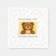 Celebrate the little cub on the way with these adorable “We Can Bearly Wait” baby shower napkins, featuring a sweet hand-drawn teddy bear illustration in a soft butter yellow tone. The playful, storybook-style artwork paired with a clean, minimal layout adds a charming touch to dessert tables, drink stations, or place settings. Perfect for a gender-neutral baby shower or teddy bear themed celebration, these napkins can be customized with the baby’s name or event details for a thoughtful finishing touch.