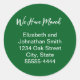 This moving announcement says "We Have Moved" in a cursive, scribble-style script. We Have Moved is on the top line. The other lines are not in script and are for your name(s) and new address. The sticker is in the classic Christmas color of dark green with white text.
