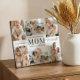 Celebrate Mom with a heartfelt keepsake she’ll treasure forever. This personalized “Love You Always Mom” photo plaque features space for six cherished photos arranged in a stylish frame, with a unique open area in the center to showcase the elegant typography of your special message: “Love You Always MOM – Our Life’s Light.” The combination of classic serif and handwritten script fonts creates a timeless and sophisticated look, while the clean white background lets your photos and message shine. The included easel-style stand makes it easy to display on a desk, shelf, or tabletop, turning family memories into a beautiful decorative piece. Fully customizable, you can adjust photos, and colors to create a truly personal gift. Perfect for Mother’s Day, birthdays, anniversaries, holidays, or any special occasion, this plaque is a meaningful way to show Mom how much she is loved. Design by Moodthology Papery