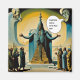 A surreal setting features a large central figure with exaggerated headwear and features, surrounded by figures as one of the floating head makes a comment.
