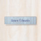 Individuell anpassbare Namensplatte für Crafters, Künstler, Unternehmen auf einem dunkelgrauen Holz wie Textur Hintergrund mit hellgrauem Druck dargestellt.