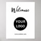 Dieses Business Poster heißt willkommen mit einem eleganten schwarzen Skript. Ein Platzhalter-Bild, das Sie durch Ihr Firmenlogo ersetzen können, befindet sich unterhalb des Skripts. Zusätzliche Texte für Ihre Website oder eine benutzerdefinierte Nachricht sind ganz unten.