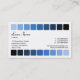 Eine stilvolle moderne Geschäfts-/Visitenkarteschablone. Umrandete Spitze und Unterseite mit einer Reihe von neun runden in Verlegenheit gebrachten Quadraten, die von einem hellblauen gehen zu schwärzen. Firmendetails über die Front mit Namen- und Kontaktdetails über die Rückseite.