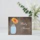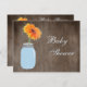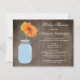 Elegantes rustikales Land vector neutrale Baby-Duscheneinladungen mit einem niedlichen blauen Vintagen Maurerglas Illustration und schöne orange Gerberagänseblümchen-Blume auf einem stilvollen Korneffekthintergrund des dunklen Brauns des Shabby Chic gewaschenen heraus verwitterten hölzernen. Nobles, modisches, modernes modernes lädt perfektes für Frühling, Sommer und Fall/Herbstduschen ein. Aller Text kann leicht besonders angefertigt werden, um Ihren Bedarf zu erfüllen und Sie können die Schriftartart, -farbe und -größe des Schriftartes ändern, wenn Sie wünschen. Wenn Sie irgendeine Unterstützung benötigen, die Ihr Produkt in Verbindung treten besonders anfertigt mit mir bitte, durch meinen Speicher und ich bin glücklich zu helfen. MERKEN SIE BITTE: Alles lädt auf Zazzle haben Ebenedruckbilder ein.