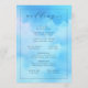 This wedding program features a serene blue watercolor background, creating a tranquil and romantic atmosphere. The layout is clean and elegant, with a central column of text that guides guests through the ceremony steps in a sophisticated serif font. The design includes customizable sections for names and dates, making it perfect for personalization. Ideal for couples seeking a classic yet modern aesthetic, this program captures the joyous occasion beautifully.