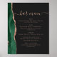 Wedding Bar Menu Emerald Rose Gold Agate Dark Poster