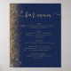 Wedding Bar Menu Navy Blue Gold Glitter Poster