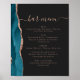 Wedding Bar Menu Teal Blue Rose Gold Agate Dark Poster