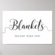 Beautiful Blankets Sign for Weddings. Outdoor Weddings can get a bit chilly once the sun sets. Some choose to supply complimentary blankets to keep their guests warm. Blankets, Please take one.