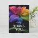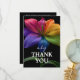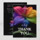 "Gratitude in Bloom: Flat Card Edition " — a wedding thank-you card from the Technicolor Love collection, designed to express heartfelt appreciation with radiant style and no imagery on the reverse. The front features the iconic rainbow lily in full multicolored bloom against a bold black backdrop, paired with a warm message like “Thank you for sharing in the love, laughter, and special moments.” Names and wedding date can be added in elegant script or modern type, depending on your tone.