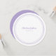 Fully customizable elegant wedding round place cards featuring a minimalist design in soft lavender and white. Personalize each card with your guest’s name and table number in matching lavender script and typography on a crisp white background. The opposite side is solid lavender for a polished, cohesive look. Customize the template with your own wedding details and order each card individually for every guest at your celebration. Perfect for weddings, rehearsal dinners, and formal events. Custom color requests welcome.